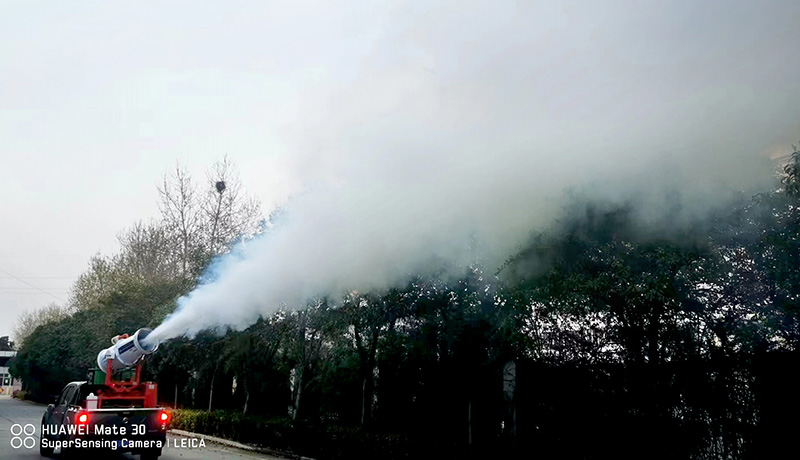 5.射程遠(yuǎn)、覆蓋面積大、霧粒細(xì)小、與飄起的塵埃接觸時(shí),形成一種潮濕霧狀體,能快速將降塵。